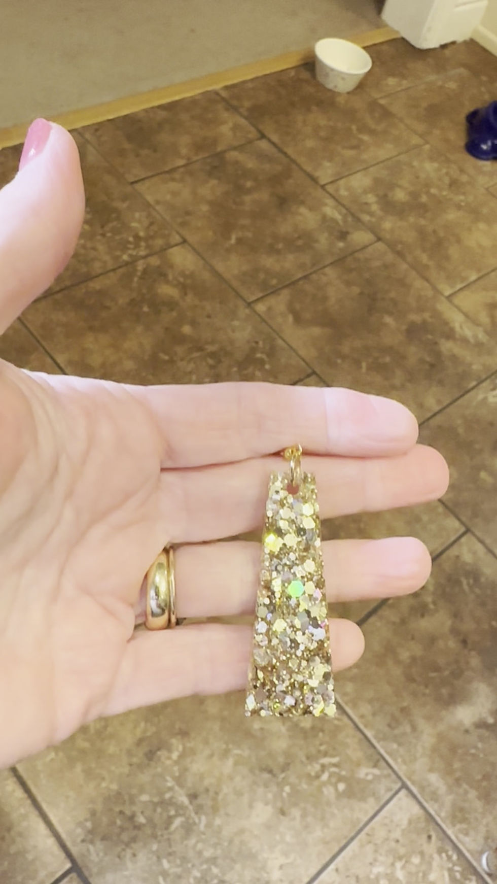 Evening Gown Gold Rectangle Glitter Resin Earrings